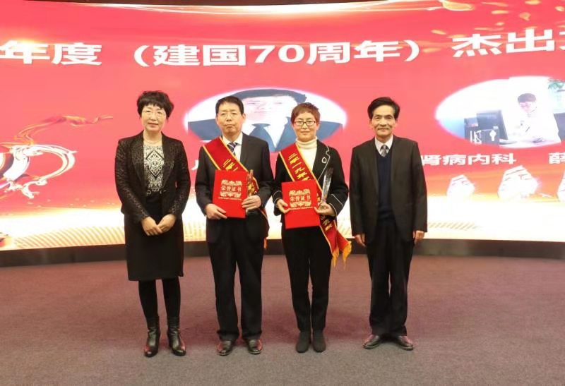 儿科贺双忍主任医师和肾病内科薛晓霞副主任医师被评为建国70周年杰出贡献奖。