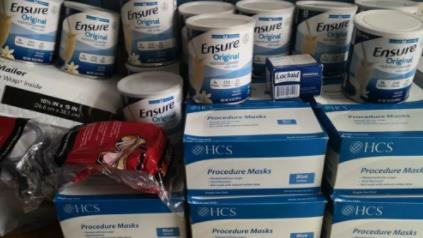 2020年3月1日,感染性疾病科隔离病区李红兵主任收到了一个特殊的快件,打开快递包裹,口罩、护目镜、ensure营养粉、lactaid乳酸酶等防护用品和营养品、药品展现在李红兵面前。