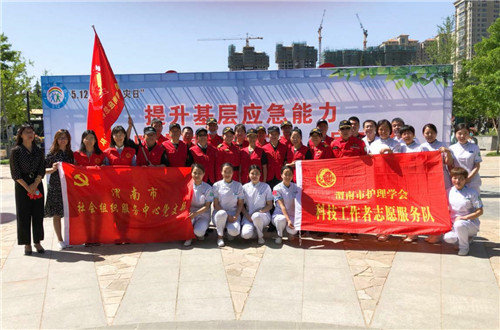 5月12日上午,正值第109个国际护士节,在这个特殊的节日,根据渭南市防灾减灾委员会和市社会组织服务中心的统一安排和部署,乐鱼在线登录入口作为市护理学会的挂靠单位在此次活动中积极组织并派出急救团队9人参加了“提升基层应急能力,筑牢防灾减灾救灾的人民防线”防灾救灾宣传活动,向市民传递“人人学会急救、处处保护安危”的观念,进一步提高全民整体急救意识。