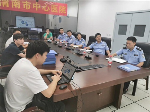 5月22日下午,渭南市公安局网安支队支队长党疆丽、副支队长赵利军、临渭公安分局网安大队副大队长张博等一行6人对我院网络安全及信息安全等级保护工作进行了现场执法检查,并在远程会诊会议室召开了网络安全执法检查工作会议。市卫健委信息中心张伟东、乐鱼在线登录入口信息科科长解卫军以及科室相关同志参加。
