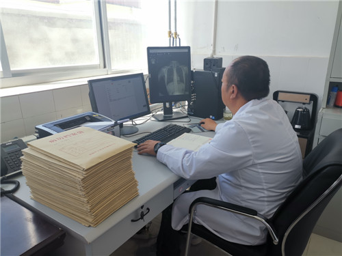 侯峰强副主任医师负责协调县城区三所学校在不影响正常学习的情况下按年级、班级做好学生和教职工的基本信息登记和时间安排。马丽主治医师负责维持现场秩序和人员核查,督促学生做到安静、有序体检。工作量最大的是放射科王勇主治医师,他要确保每一个孩子正确摆体位,准确完成所有体检人员的阅片、报告及最终的整理归档。设备故障时还要承担维修等工作,一天下来两脚发软,头疼欲裂,长时间的疲劳工作让他体重迅速下降,整个人都憔悴了许多。