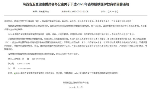7月13日,陕西省卫健委官网发布了《陕西省卫生健康委员会办公室关于下达2020年省级继续医学教育项目的通知》,并公布了项目名单。市中心医院呼吸内科申报的《呼吸系统疑难危重疾病诊治进展》成功获批。该项目的获批,标志着市中心医院省级继续医学教育项目的零突破,医院呼吸内科学科建设和学术水平再上新台阶。