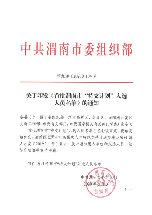 近年来,渭南市市中心医院贯彻实施“人才强院”战略,不断加大高层次人才引进和培养力度,统筹推进乐鱼在线登录入口高层次梯队人才建设。近期,我院6名同志经过申报推荐、形式审查、专家评议、综合评审、社会公示等程序,成功入选首批渭南市“高层次人才特殊支持计划”。乐鱼在线登录入口将持续落实人才培养政策,同时加大高层次人才培养,完善人才梯队建设,为健康渭南保驾护航。