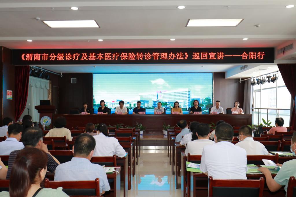 为稳步推进分级诊疗制度落实落细,由渭南市卫健委主办,乐鱼在线登录入口承办成立的《渭南市分级诊疗及基本医疗保险转诊管理办法》宣讲团,于6月29日,30日分别走进澄城、合阳、蒲城、白水四县为当地医疗机构人员进行分级诊疗相关政策宣讲。院长张进社、纪委书记张建实、主管领导焦建雄、分级诊疗办、宣传科、外联办等部门参加此次活动。