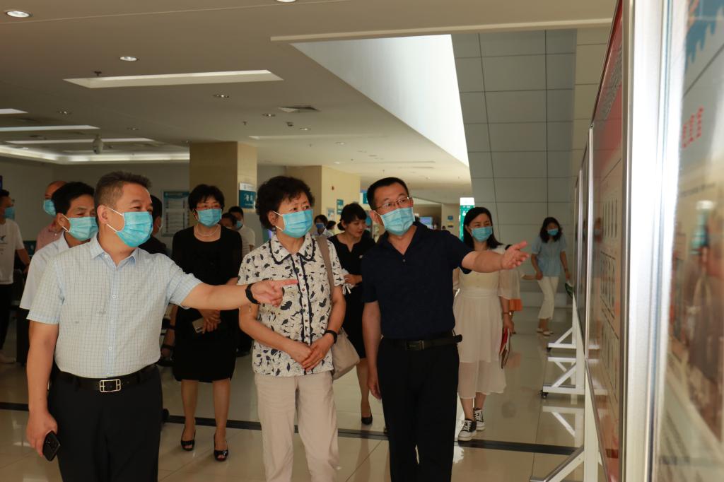 刚进门诊大厅,医院为献礼党的百年华诞、庆祝建院90周年制作的“百年党史和卫生健康史集邮展览”展板吸引了习会长的目光。党委副书记党继革为习会长一行详细介绍,习会长连连称赞。