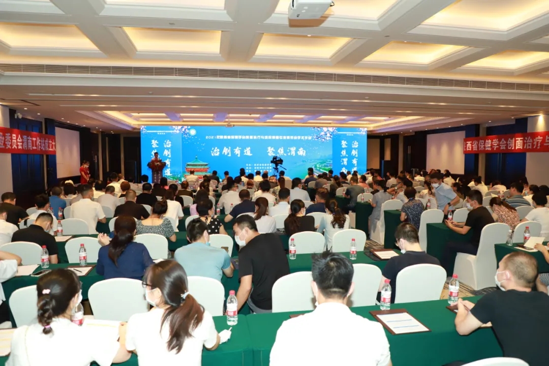 2021年陕西省保健学会创面治疗与组织修复专业委员会学术年会暨渭南工作站成立大会会议现场。