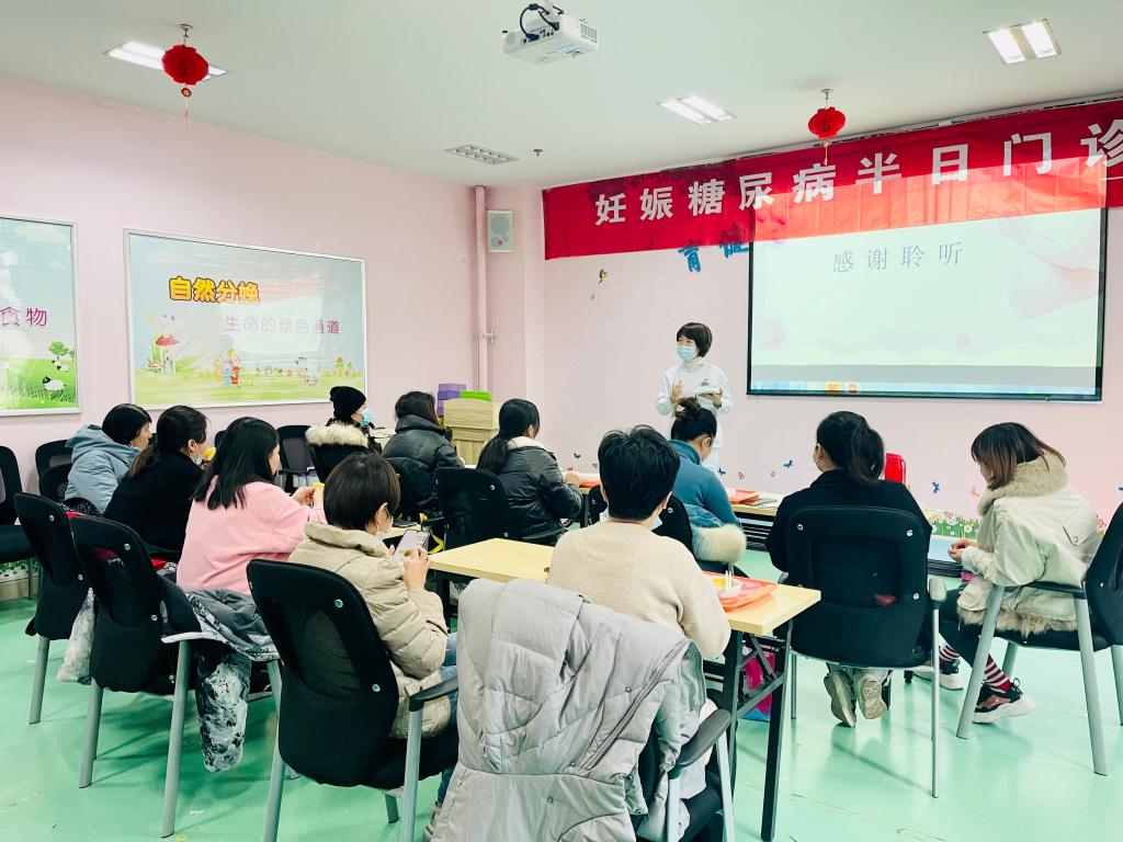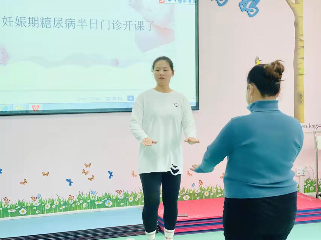 产科主任魏满莉为大家讲解妊娠期糖尿病这一孕期合并症对母婴的危害,让孕妈妈认识到管好血糖的重要性。副主任安晓娜通过PPT课件,详细讲述妊娠期糖尿病防治和如何做到“管住嘴,迈开腿”管理血糖的具体方法。课间休息时间,专科护士张咪耐心为“糖妈妈”指导测血糖的方法和注意事项。接下来的运动课,大家跟着护士加芬认真练习孕妇体操,调动起孕妈妈的热情。中午12:00,帮糖妈妈量身定制、不同热卡的营养午餐准时送到每位孕妇手中。