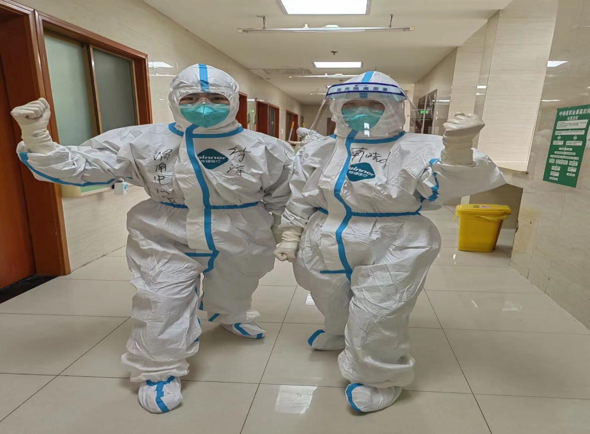 因为防护服,面罩,不能看到我们的样子,但挡不住我们对疫情的必胜之心。