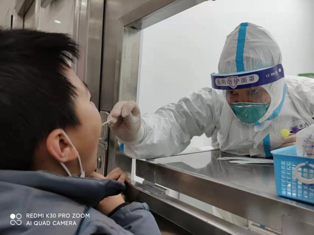 中午吃午饭时,刘琼琼说:“昨天值夜班见到了我儿子,闭环管理现在14天了,一直没看见孩子。孩子发热都一周了,我爱人怕影响我工作没有告诉我,今天恰巧我当班,孩子来就诊......”她说着眼泪就流了下来,“采完血,做完检查,我就让爱人领着孩子回家了,望着孩子离开的背影纵然有万般不舍,也只能泪眼婆娑,这里是我们的岗位,必须坚守自己的使命”。