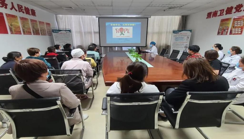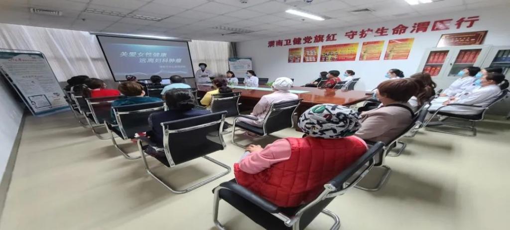 4月15日至21日是第28个“全国肿瘤防治宣传周”。为贯彻落实健康中国癌症防治行动,进一步提高全民癌症防控意识,营造防癌抗癌的良好氛围,4月20日,市中心医院妇科开展以“关爱女性健康 远离妇科肿瘤”为主题的科普大讲堂。活动由主任雷红主持,医护人员及30余名病陪人参加。