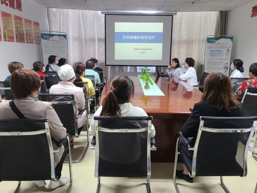 营养科负责人权亚玲,以“妇科肿瘤的营养治疗”为题,从妇科肿瘤患者营养现状、恶性肿瘤营养代谢特点、肿瘤患者营养支持、放化疗患者膳食营养进行讲解,呼吁大家从膳食出发,应对放化疗的副作用,提高患者对放疗和化疗的耐受力。