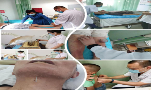 目前中医科门诊特色治疗室及病区开展诊疗项目有:针刺、温针灸、艾灸、雷火灸、拔罐、平衡火罐、穴位贴敷、耳穴压豆疗法、热奄包等中医适宜技术,对常见疾病,如颈椎病、中风病、肩周炎、面瘫病、腰痛病、消化不良、落枕、膝骨关节炎、偏头痛、失眠等具有较好的治疗效果,获得患者一致好评!