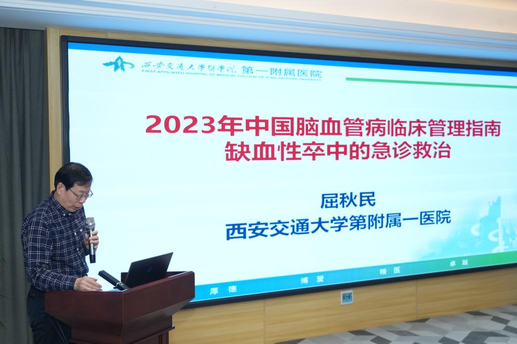 随后,陕西省人民医院胡军教授,西安交大一附院谭颖教授、于嘉教授、刘福德教授分别就《静脉溶栓的适应症和禁忌症评估及特殊患者溶栓治疗》《静脉溶栓出血转化的监测和处理》《机械取栓术的发展及现状》《AIS介入治疗并发症预防与处理》为主题进行授课。现场气氛热烈,学术氛围浓厚。