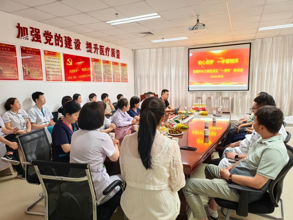 7月1日下午,普通外科三病区(创面修复中心)举行“初心筑梦 温暖同行”成立一周年主题座谈会。普通外科主任、护士长、各医疗组长及三病区全体医护人员齐聚一堂,共同回顾发展历程,展望未来蓝图。