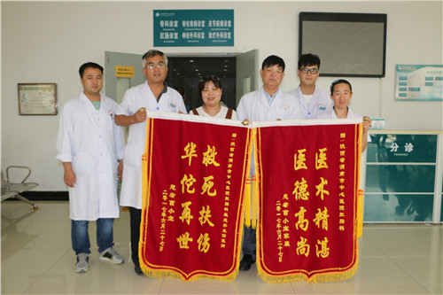 “这次确实要好好感谢赵医生,没有他的治疗,我丈夫早就没命了!非常非常感谢他......”6月28日上午11时30分,患者曹某的妻子将两面早已准备的感恩锦旗送到了肛肠科赵志学主任手中,以此赞扬该科室精湛的医术、高尚的品德和关怀备至的工作态度。