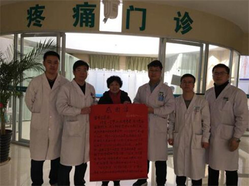 本例患者根据体质及病情选取普通针刺的方法,配合臭氧注射技术、神经阻滞技术等。经过一周时间的治疗,据患者自述疼痛明显减轻了,基本不影响睡眠,心情也跟着好起来。经过半个月的系统治疗,疼痛基本消失。“我也没想到治疗效果这么好,解决了我的病痛,医生们护士们不仅治病仔细认真,还天天不断跟我聊天,开导我,给我信心,是他们给了我第二次生命。”出院时,刘阿姨很激动,在感叹神奇疗效的同时,更多的是无限感激医护团队给予她无微不至的关爱。还专门写了感谢信送到医生手中。