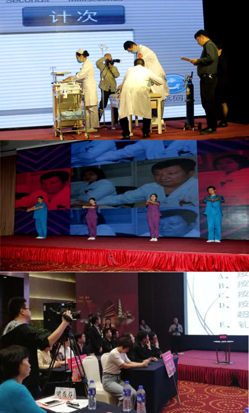 在“急救技能大赛”环节,中心医院院代表队发挥出色,医、技、护配合默契,紧凑精确地完成了技能展示。“风采展示”环节,代表队表演了洗手舞,用活泼的舞蹈形式展示七步洗手法,配合宣传科精心制作的多媒体渲染,赢得了阵阵掌声。