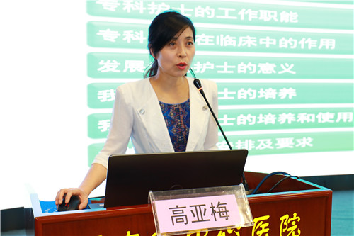 会上,黄慧玲副院长作了开班致辞,回顾了医院近年来专科护士培养情况与成效,并对本届培训班提出了殷切的期望和要求。护理部雷爱英主任、高亚梅主任、急诊科穆晓红护士长分别就医院护理工作概况、国内外专科护士的培养现状及医院专科护士工作模式及急救护理新进展进行了详细讲解。
