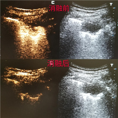 超声造影作为目前最先进的超声成像技术,能够提供比普通超声及彩色多普勒超声更丰富、更明确的诊断信息。它在常规超声检查的基础上,通过静脉注射超声造影剂,来增强人体的血流信号,实时动态地观察正常脏器和肿块的血流灌注情况,提高超声诊断的特异性和敏感性。微波肿瘤消融术是的肿瘤微创治疗技术,它的原理使局部肿瘤组织凝固性坏死,最终形成液化灶或纤维化,起到原位灭活肿瘤组织的作用。具有疗效好、创伤小、痛苦小、恢复快、适应症广等优点。大多肺癌微波消融术是在CT引导下进行,但是对于紧贴胸壁的周围型肺癌,超声可以实时清晰显示。而超声造影在微波消融治疗前、中、后应用,可降低穿刺并发症的风险,确定治疗术中监测评价疗效。
