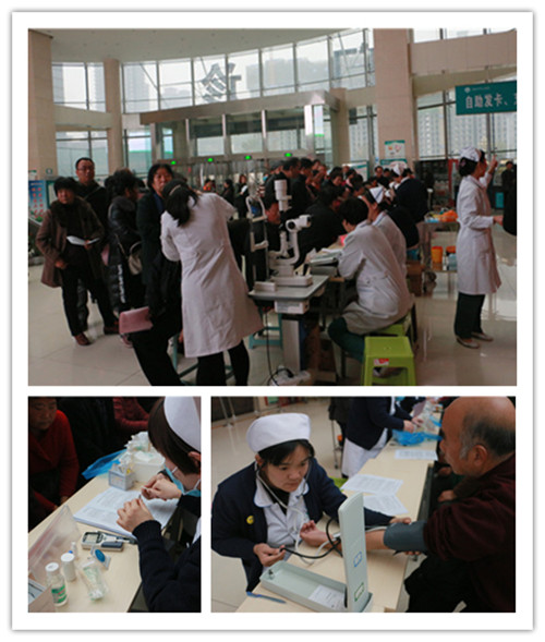 此次义诊免费为糖尿病患者进行血糖检测、糖化血红蛋白检测、血压检查,提供裂隙灯显微镜、眼底检查,重点在早期发现糖尿病视网膜病变等并发症,并为他们提供健康咨询;护理人员发放健康宣传手册,向广大咨询者普及糖尿病和眼部疾病相关知识,健康饮食及健康生活方式,义诊现场气氛非常活跃,秩序井然。截至中午12点义诊结束共为240余位糖尿病患者进行诊疗,发放教育手册200余份。