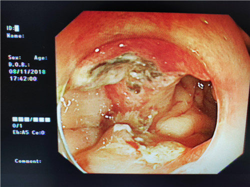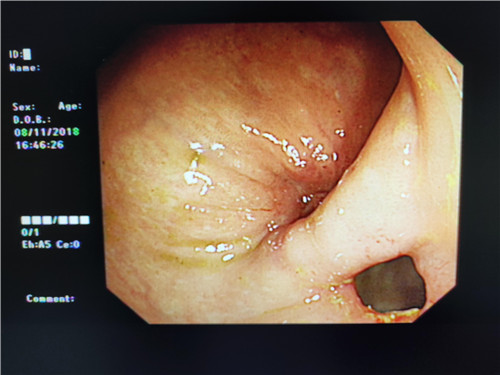 11月8日下午,内窥镜室准备为一名肠道狭窄患者实施肠道狭窄球囊扩张治疗。患者48岁,既往9月前因直肠淋巴瘤在外科行剖腹探查、小肠部分切除、乙状结肠部分切除,直肠肿物切除、小肠减压、阑尾切除术,术后在血液科化疗四次。4月前该患者排便不畅,行结肠镜检查提示:吻合口狭窄,但患者大便还可勉强通过。近日腹胀加重,大便难以排出,故入院于11月8日拟行肠镜下吻合口狭窄球囊扩张术。