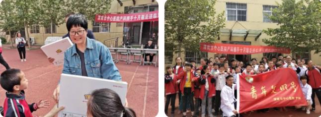 在学校老师的精心安排下,产科医护人员为每一位孩子量身高、测体重、查视力、听心肺,仔细检查生长发育、健康、营养情况。俯下身来,耐心地和孩子沟通交流,了解孩子们的学习生活。体检完,孩子们高兴的拿到送给他们的书本、玩具、学习用品,还和叔叔阿姨一起在操场上打篮球、做游戏。