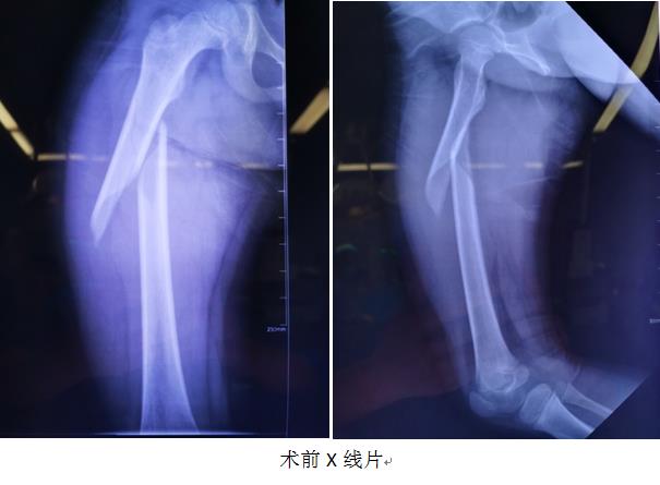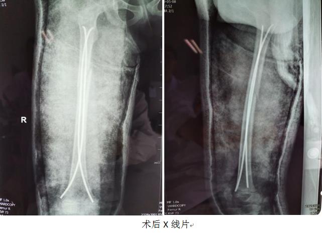 近日,骨二科急诊完成了一例小儿股骨干骨折闭合复位弹性髓内钉固定术。