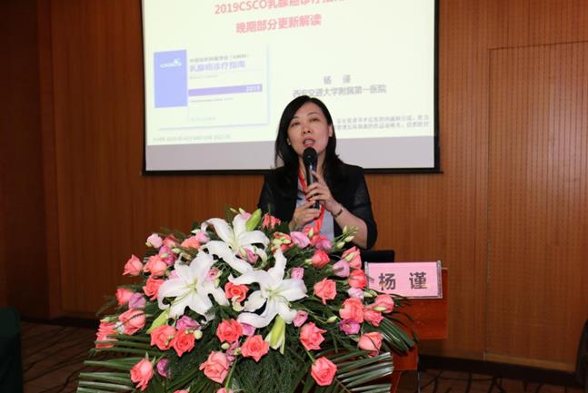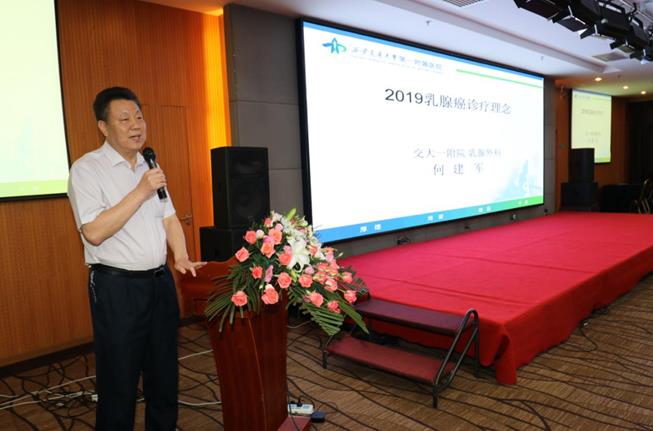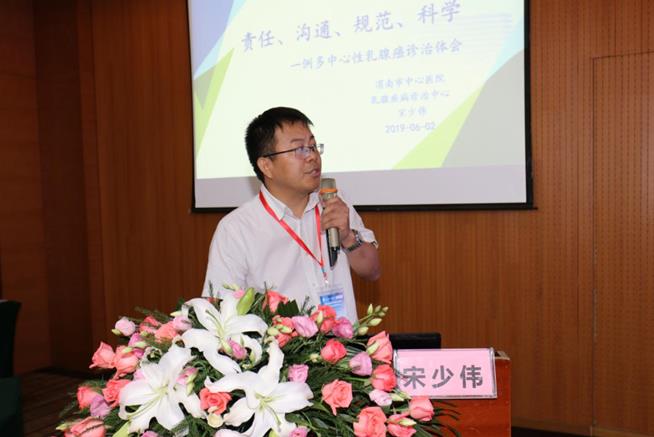 第二阶段的首场学术报告会,西安交大第一医院乳腺外科何建军教授,天津医科大学附属肿瘤医院乳腺肿瘤科刘君教授,西安交大第一医院肿瘤内科杨谨教授及宁夏回族自治区人民医院吴红丽教授分别作了《2019乳腺癌诊疗理念》《重“新”再认识乳腺癌的外科治疗》《2019CSCO乳腺癌诊疗指南晚期部分更新解读》《中医药联合微创清洗治疗乳腺炎》的精彩讲座。市中心医院乳腺中心卜智斌副主任医师就《微创治疗在乳腺疾病的应用》做了经验总结,宋少伟副主任医师就《一例多中心性乳腺癌诊疗体会》做了病例分享。咸阳市中心医院腺体血管外科王新民主任,宝鸡市中心医院乳腺科李有怀主任及商洛市中心医院甲乳外科贾晓斌主任对我院乳腺中心的综合实力,包括空芯针穿刺活检、乳腺磁共振检查、保乳整形手术、输液港技术、前哨淋巴结活检,乳房重建等各项技术的常规开展,以及乳腺MDT诊疗予以充分肯定及高度评价。