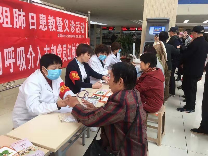 在第十八个世界慢阻肺日来临之际,乐鱼在线登录入口乐鱼在线登录入口医护人员及心内呼吸介入党支部党员志愿者在门诊一楼大厅进行以"齐心协力终结慢阻肺"为主题的大型义诊活动。