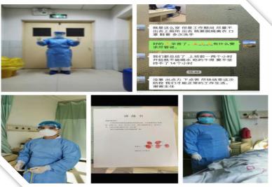 面对抗疫工作,大家没有一丝怨言,兢兢业业工作在一线。科内同志克服人员少,工作强度大的困难,认真接诊每一位住院患者,详细询问患者及家属有无疫区接触史等情况,绝不放过任何一条可疑线索。 护士每日认真落实紫外线空气消毒、擦拭病历夹、门把手、电脑键盘等各项防控措施,每日监测在院患者、陪人体温,门禁班护士严格把门,详细登记进、出病区的每一位人员,24小时离岗不离人。