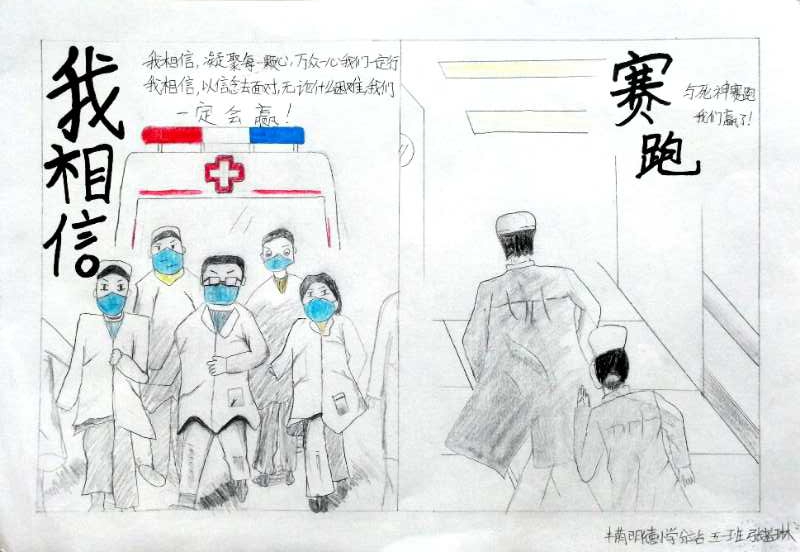 我的女儿是一名五年级的小学生,我们20多天没有见面,知道我奋斗在抗“疫”一线,孩子专门画了一幅画,一直为妈妈加油。在我与孩子的视频中,看到了孩子眼中的泪,是骄傲的泪――“那是我妈妈!”在孩子的心目中,我们是与死神赛跑的“战士”,我们是“英雄”。