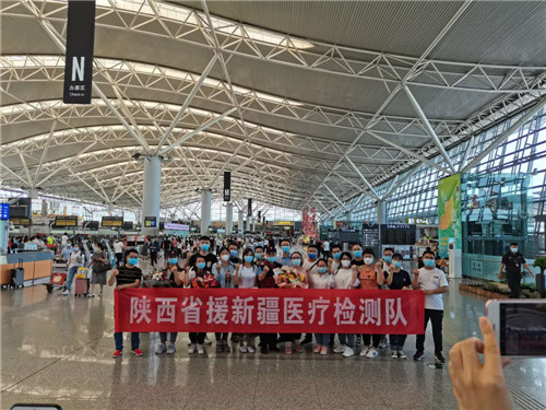 秦新皆古道,丝路一家情,陕西是丝绸之路的起点,乌鲁木齐是丝绸之路必经之地,也是中西方文化交汇融合的核心区域。新疆疫情牵动着全国人民的心,渭南医务检测人员第一时间挥师远征,同新疆人民心手相牵,结伴而行,相信他们一定会不辱使命,打赢疫情战,旗开得胜,凯旋而归。