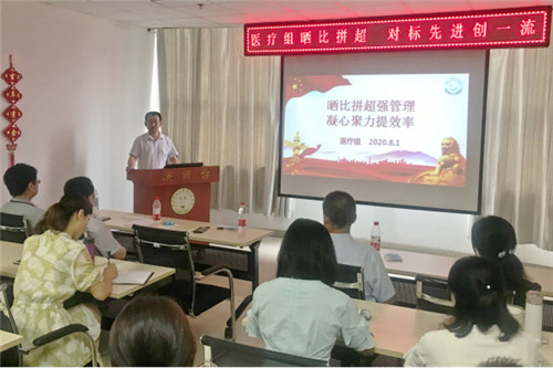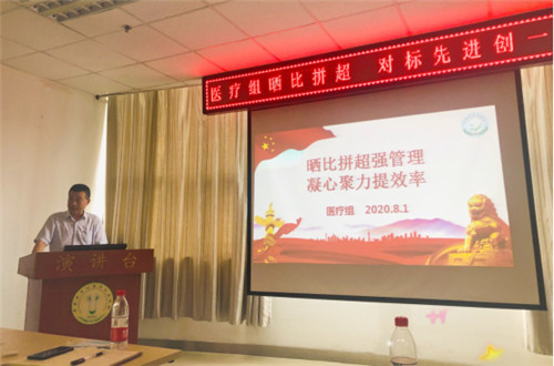 连日来,医疗组积极响应院党委号召,掀起了“晒比拼超”活动开展的高潮。继7月28日成功举办第一届青年医师临床病例分析比赛之后,8月1日上午,焦建雄副院长带领医疗组职能部门干部职工以“增强管理能力、提升工作效率”为主题召开“晒比拼超”交流会。会议邀请了院党委副书记党继革参加,由医务科科长刘韬主持。