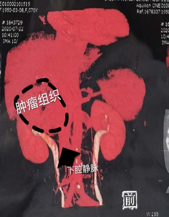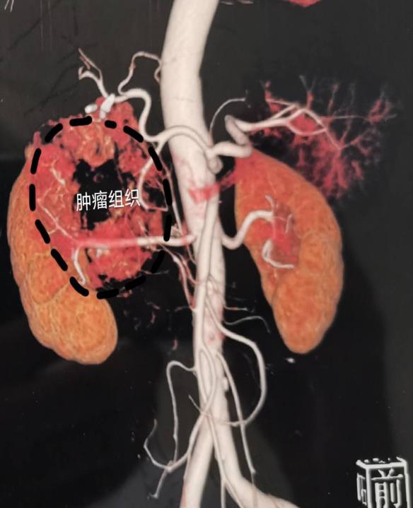 日前,泌尿外科雷永刚主任医师接诊了一例患者,女性,70岁,体检发现右肾区一巨大包块,与肾上腺界限不清。做增强CT检查提示为,右肾上极不规则肿块直径约8.4cm,突破肾背膜向肾周脂肪内膨胀性生长,紧邻下腔静脉,与右侧肾上腺内侧支关系密切。考虑肾脏恶性肿瘤,滋养血管丰富,且有发自腹主动脉的供应血管。