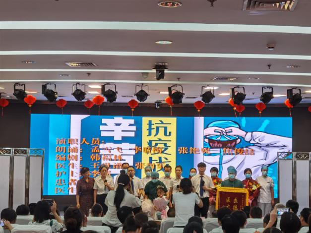为配合医院做好医师节表彰工作,科室组织排练舞台情景剧“坚守”,还原抗疫现场。科室成员积极报名,集思广益,挑选出10余名人员,利用业余时间加班加点、自导自演,奉上抗疫原创节目,给医师节献上大家的一份心意和礼物,丰富了表彰大会的内容,获得了同行好评。舞台剧“坚守”不仅让大家了解到抗击新冠肺炎过程中的酸甜苦辣,更是告诫大家要继续弘扬抗疫精神,笃定意志,凝心聚力,始终不忘为患者服务的宗旨,牢记使命。