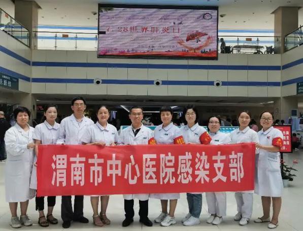 为积极响应中国肝炎基金会号召,进一步提高公众对病毒性肝炎的认识,感染党支部、感染性疾病科肝病专家积极报名,于世界肝炎日在医院门诊大厅进行了中国消除丙肝公益项目—天下再无丙肝义诊活动,以实际行动落实主动为患者服务的理念。活动现场,大家争相为过往群众科普丙肝相关知识,增强群众治疗丙肝信心。通过大家仔细耐心的讲解,在场群众了解了丙肝的传播途径,知道了丙肝是可治愈的疾病,明白了丙肝的预防和相关注意事项。