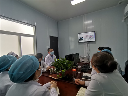 李红兵主任实地查看了预检分诊、发热门诊及感染性疾病科病区,对科室布局分区、接诊流程以及科室前期工作等给予肯定,并对细节管理以及工作方向提出建设性意见。他表示,疫情常态化,感染性疾病科工作要两手抓,一手抓疫情防控,一手抓科室发展。疫情防控是当前大事,严格按照防控要求办,思想上要高度重视不能有丝毫马虎和懈怠。同时以《常见慢性肝病诊治》为主题,结合实际收治患者情况,为大家带来了一场既通俗易懂,又能了解前沿知识的学术讲座。并对前期收治的一例慢性病毒性乙肝患者病例进行教学点评,从规范诊断,辅助检查解读,病情分析,精准治疗,出院医嘱等不同纬度做了详细、严谨评判,肯定了诊治方案,提出不足之处。