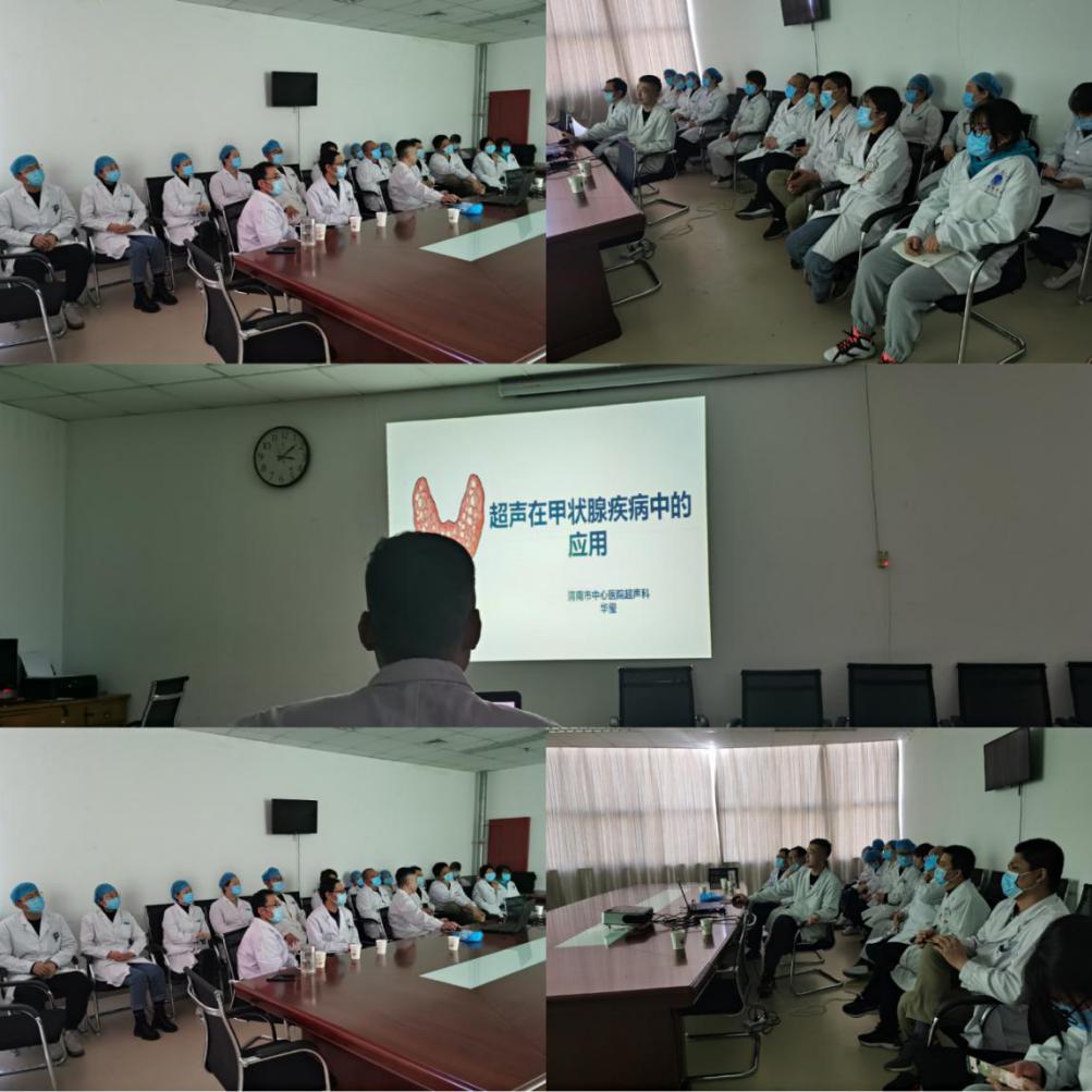 本次学习活动以“甲状腺超声检查”为主题,超声科华玺医师利用二维超声、超声弹性成像、超声造影以及超声引导下甲状腺细胞学穿刺活检术(FNA),并结合图片、视频和大量病例对甲状腺疾病的超声规范化诊断进行详细讲解。综合阐述了现代超声医学发展在甲状腺疾病诊疗中的广泛应用。