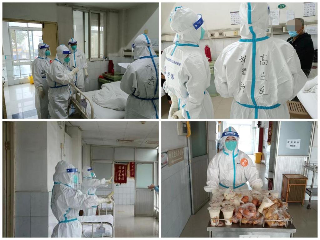 在封闭、压抑的环境下,患者多少都会出现恐慌焦虑、烦躁不安等情绪问题。为稳定患者情绪,充实隔离生活,我们会从细微处入手:按时发放一日三餐,为他们增加营养;对老年及患有基础性疾病的患者,进行健康用药指导;工作之余逐一进行个体化心理疏导,引导患者加强日常活动,稳定患者情绪;指导患者正确佩戴口罩,组织大家学习七步洗手法;建立护患交流群,推送一些轻松减压的视频及防疫小知识等等。凭借真诚细致的人文关怀,为大家送去温暖关爱,用信念与责任帮助他们树立战胜疾病的信心。