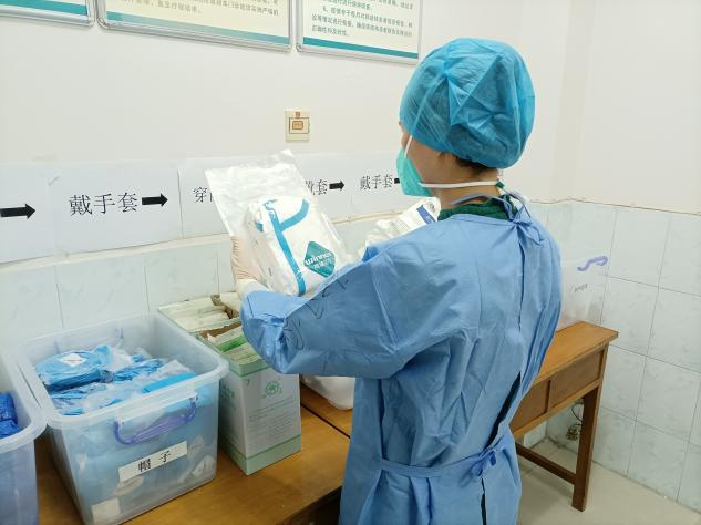 抗击疫情,感控当先。在工作人员进入隔离病区前,外感护士必须首先为大家把好第一道安全防线。“检查一下口罩的密合性”“头发要全部遮挡在帽子里面”“检查一下防护服有无破损,下蹲、看看有无漏气……”这是外感护士每天对大家说的最多的话。有一次,战友们穿好防护服准备进入病区时,我发现其中一人领口处有点松开,立刻喊停,重新进行检查、固定。“这一点缝隙应该没事吧?”“你可千万不能大意,要做到从头到脚密不透风,才能保证你们的安全!”作为一名感控护士,要时刻心系整个团队的安危,工作中容不得半点马虎。