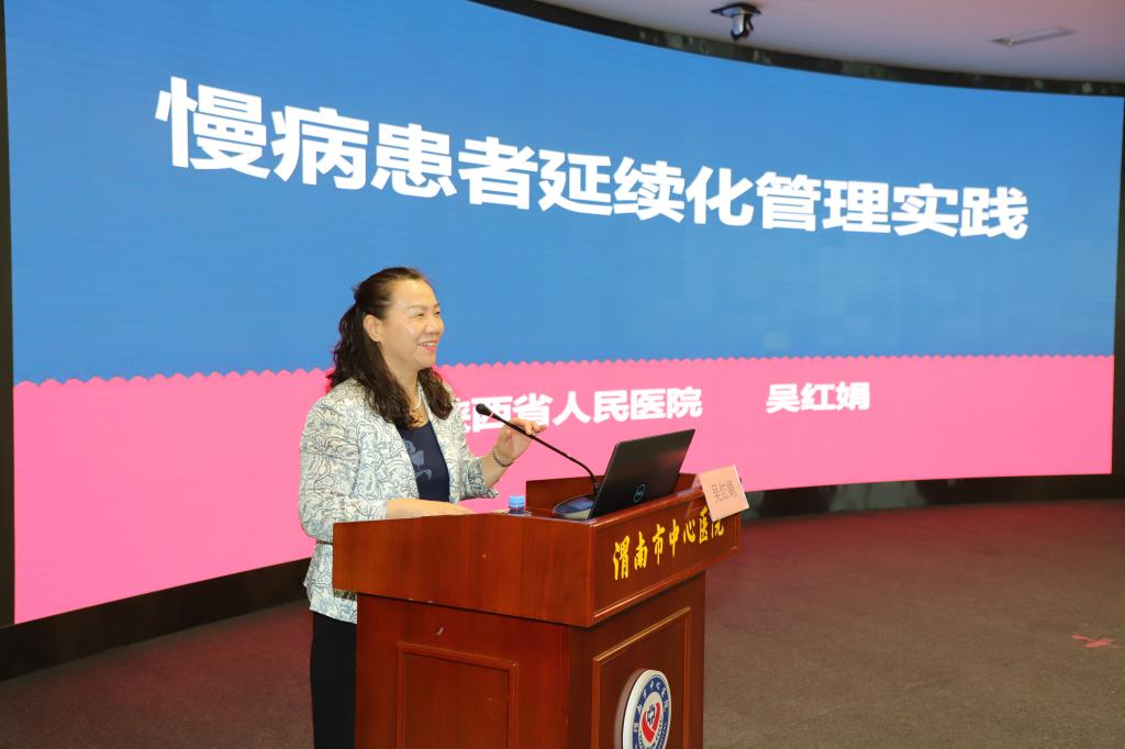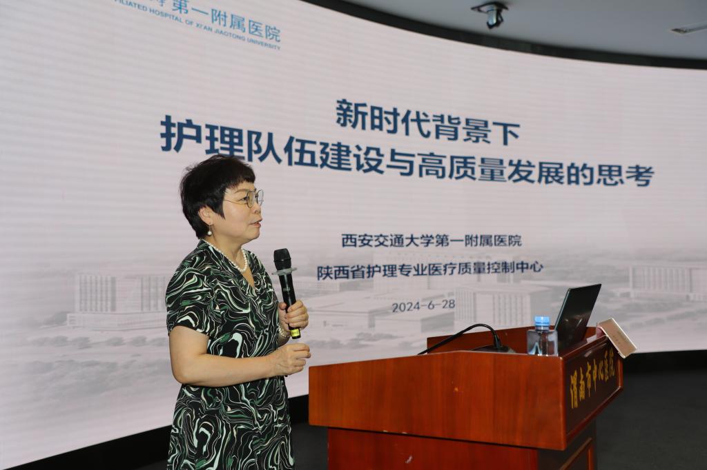 培训会上,西安交通大学第一附属医院护理学科带头人辛霞、陕西省人民医院护理部主任吴红娟、空军军医大学第一附属医院护理部主任胡雪慧现场授课。三位专家分别从《新时代背景下护理队伍建设与高质量发展的思考》《慢病患者延续化管理模式实践》《信息化技术赋能护理高质量发展》方面进行精彩讲解。