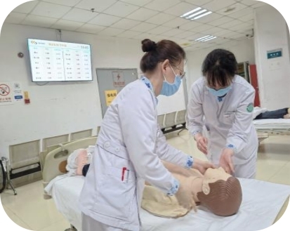 互动环节中,两位老师对患者及家属们提出的问题一一解答,患者及家属们争相交替进行练习,医务人员在旁纠正错误动作,有效提升患者面对突发情况现场急救的能力。