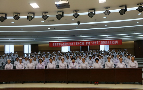 日月开新元,天地又一春,在这个朝气蓬勃、万象更新的美好季节,为了不断巩固“小教员”培训成效,进一步加强护士综合素质培养,巩固培训成果,全面提高护理工作质量,2016年2月23日,第十二届护理“小教员”循环培训工程在报告厅拉开了帷幕。主管院长黄慧玲、护理部副主任雷爱英、高亚梅、全院护士长、各科“小教员”及护理骨干近 300人参加了开班仪式,会议由护理部副主任雷爱英主持。