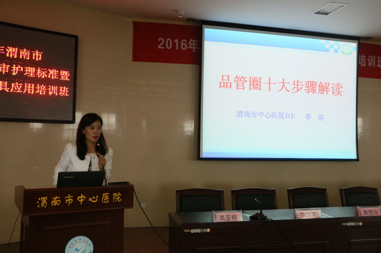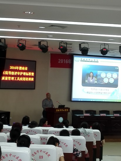 在随后的授课环节中,黄院长以医院等级评审工作的迎评准备为主题作了深入浅出的讲解;雷爱英主任重点对等级医院评审中涉及的护理相关条款进行了解读;高亚梅主任介绍了PDCA在评审中的应用;郑燕、李苗、吴燕3位护士长分别就品管圈十大步骤、常见问题解析及图表的制作与应用等作了讲解;尤其是市医学会麻醉分会主任委员、麻醉质控中心主任、我院麻醉手术科关新江主任,从多角度、多视野为大家传递了“创新”新思路、新理念,为大家带来了全新的感悟,使大家体会到“创新就在身边”。