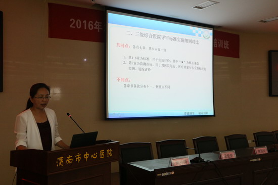 为了深入贯彻落实《综合医院评审标准实施细则(2011版)/(2012版)》和《优质护理服务评价细则(2014版)》等标准,扎实推进全市护理工作质量持续改进,全面提升护理工作内涵建设,9月24日,在渭南市卫计局和各兄弟医院的支持下,由渭南市护理质控中心、护理学会主办,乐鱼在线登录入口承办的全市医院等级评审护理标准暨质量管理工具应用培训班在我院学术报告厅成功举办,来自全市41家医院及我院护理人员共计360余名参加了此次培训。培训会由我院护理部副主任高亚梅主持。