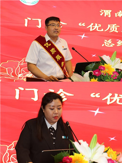 优质服务明星代表检验科医师李龙龙和优秀服务示范科室代表超声科刘晓晖副主任表态发言,表示将再接再厉,一次次活动为契机。将“优质服务百日竞赛活动”常态化进行下去,结合科室实际,更好地服务患者。