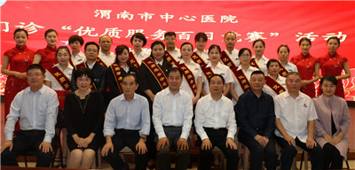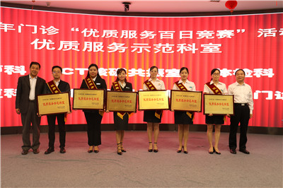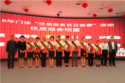 第三项颁奖环节,院领导们为在“优质服务百日竞赛活动”中表现出色的优质服务示范科室代表和优质服务明星进行颁奖并合影留念。