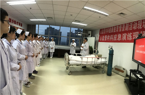 2018年10月24日下午,乐鱼在线登录入口心血管内科为进一步提升急诊急救技能及优质护理服务水平,加强医护团队配合,提高护士对突发事件的应对能力及健康教育能力,组织全科护士在十楼示教室开展了“心血管内科急救应急演练及健康教育情景剧”展示。此次活动由郑燕护士长主持,李军农主任,韩红梅副主任现场指导。