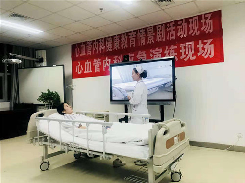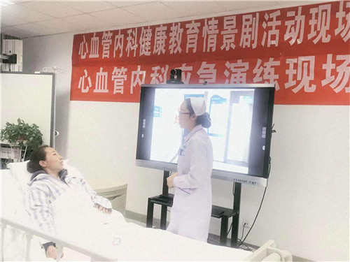 演练结束后,进行了以“心血管内科健康教育”为主题的情景剧展示,科室共计15名护士参加,宣教内容丰富,贴近患者的需求,表演真实、生动,极具感染力,受到在场医护的阵阵掌声。