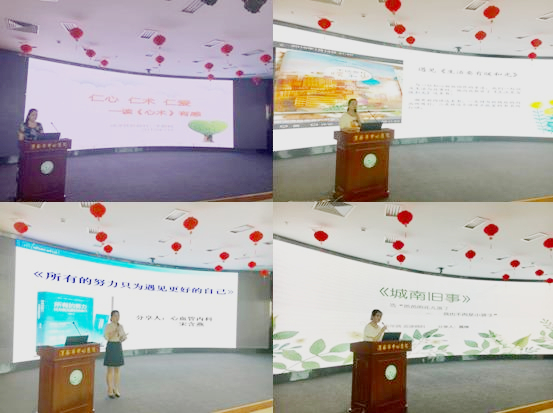 读书分享环节,感染性疾病科李腊梅护士长分享了《心术》,以此激励医护工作者要始终保持仁心、仁术、仁爱,在相互信任的基础上为患者提供更加优质的服务;产科贺园园护士分享了《生活要有暖和光》,提倡女性要活出平和笃定,以优雅而从容的姿态面对工作和生活;心血管内科宋含燕护士分享了《所有的努力只为遇见更好的自己》,激发大家努力奔向更广阔的天地,为自己的未来搏击翱翔;老年病血液病科黄琳护士分享了《城南旧事》,让大家感受到了如山、如天、如河般巍峨、深远、细腻的父爱。